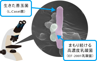 ↑電子顕微鏡で見た、EF-2001が生きた善玉菌のエサとして取り込まれているところ