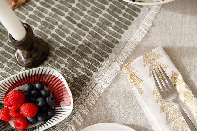 今回は、気軽に取り入れられるランチョンマットとペーパーナプキンを使ったテーブルコーディネートを紹介していただきました。「みんなで集まったときにマリメッコの柄をプラスしていくと、それだけで一気に楽しい雰囲気になりますよ」。