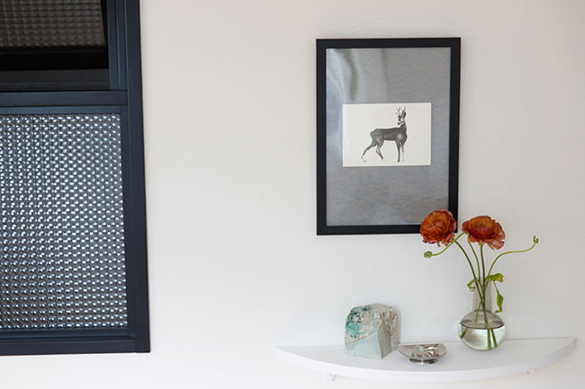 「北欧では、出窓にお花や小物を飾ることが多いのだそうです。我が家は窓に奥行きがないので、フレームで窓辺を演出してみました。フラワーベースもおすすめのアイテムです。お花を飾ることも自然を大切にする“北欧らしさ”の要素ですから。フラワーベースでなくても、北欧デザインのピッチャーやグラスでもいいと思います。