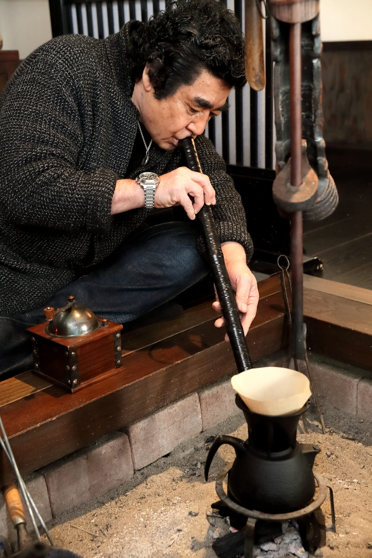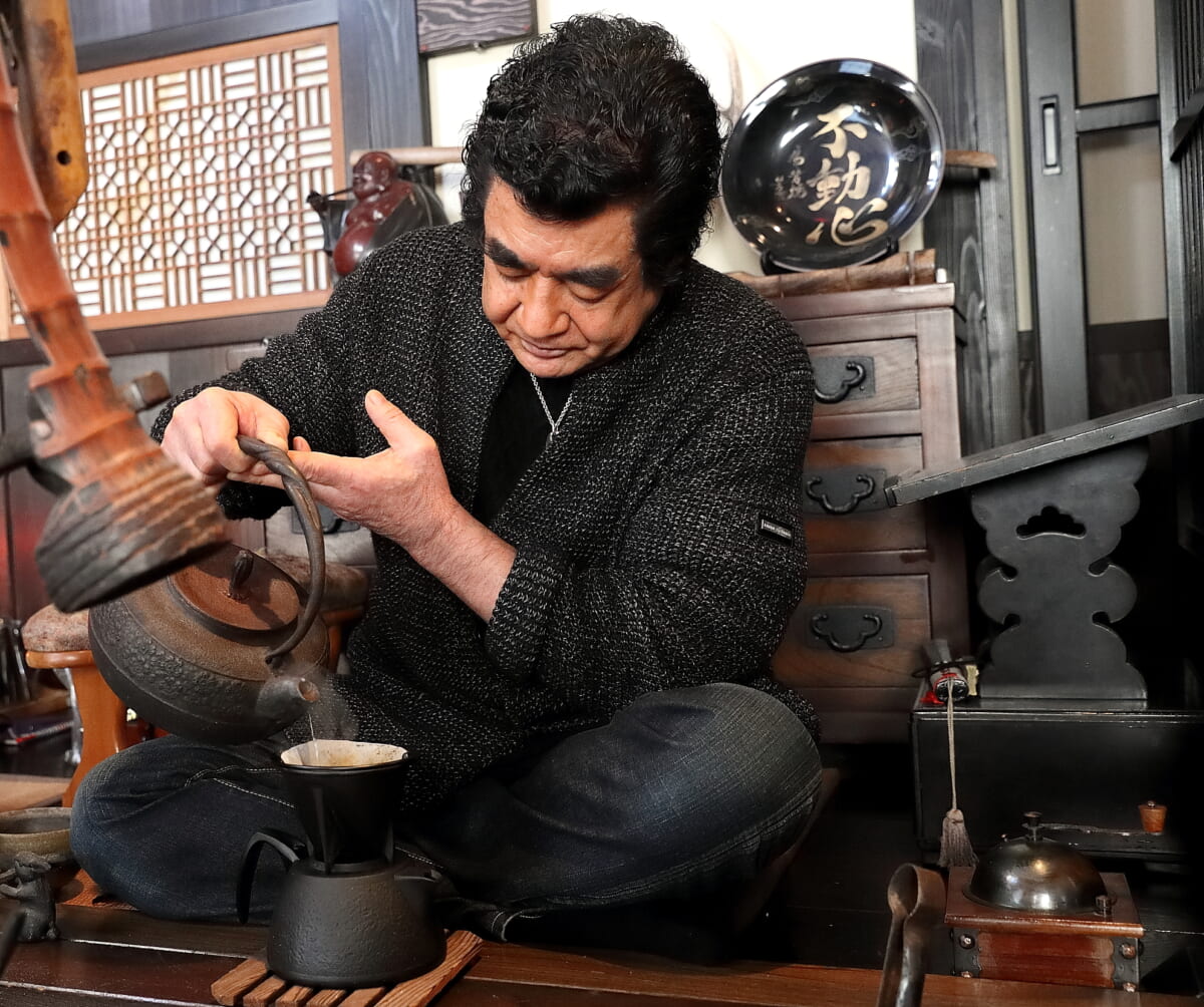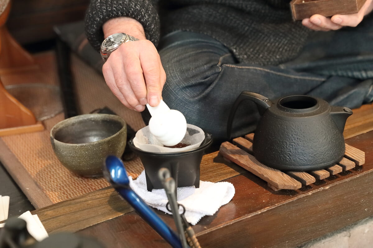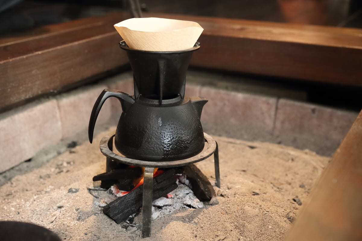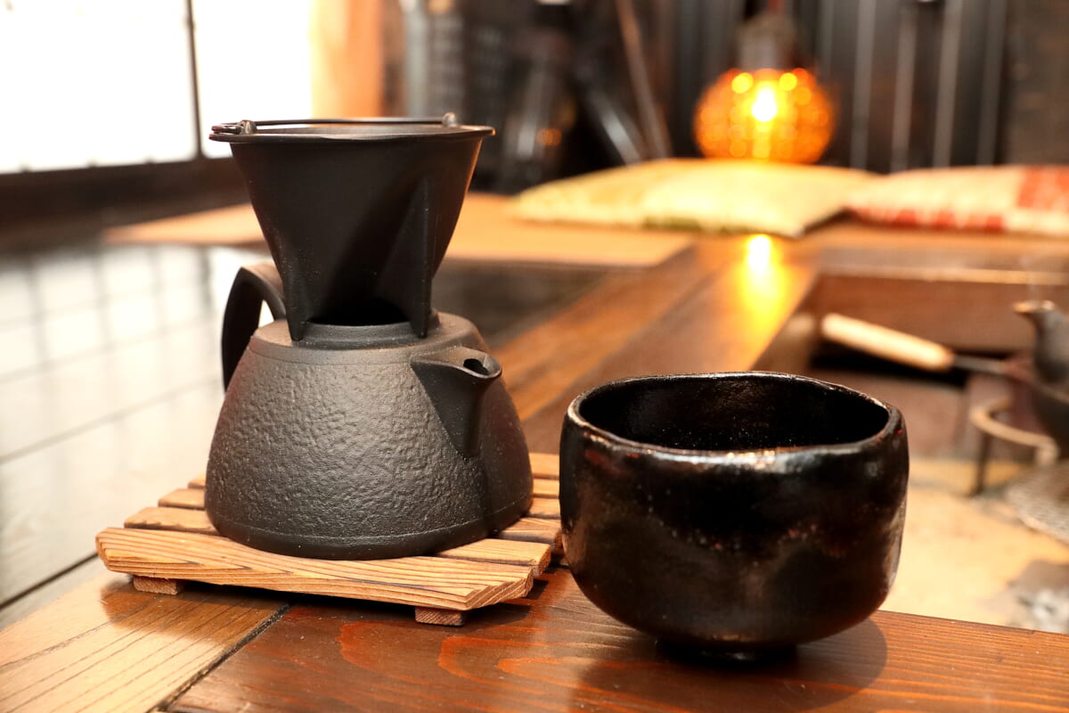 コーヒーを点てる時も日本の心を楽しむ。風情のある和風の茶器や茶碗、そして囲炉裏。すべて和のモノで楽しむというのがいいのではないか、和に統一されたらいいじゃないかと思って、いただいたときはすごくうれしかったんです。