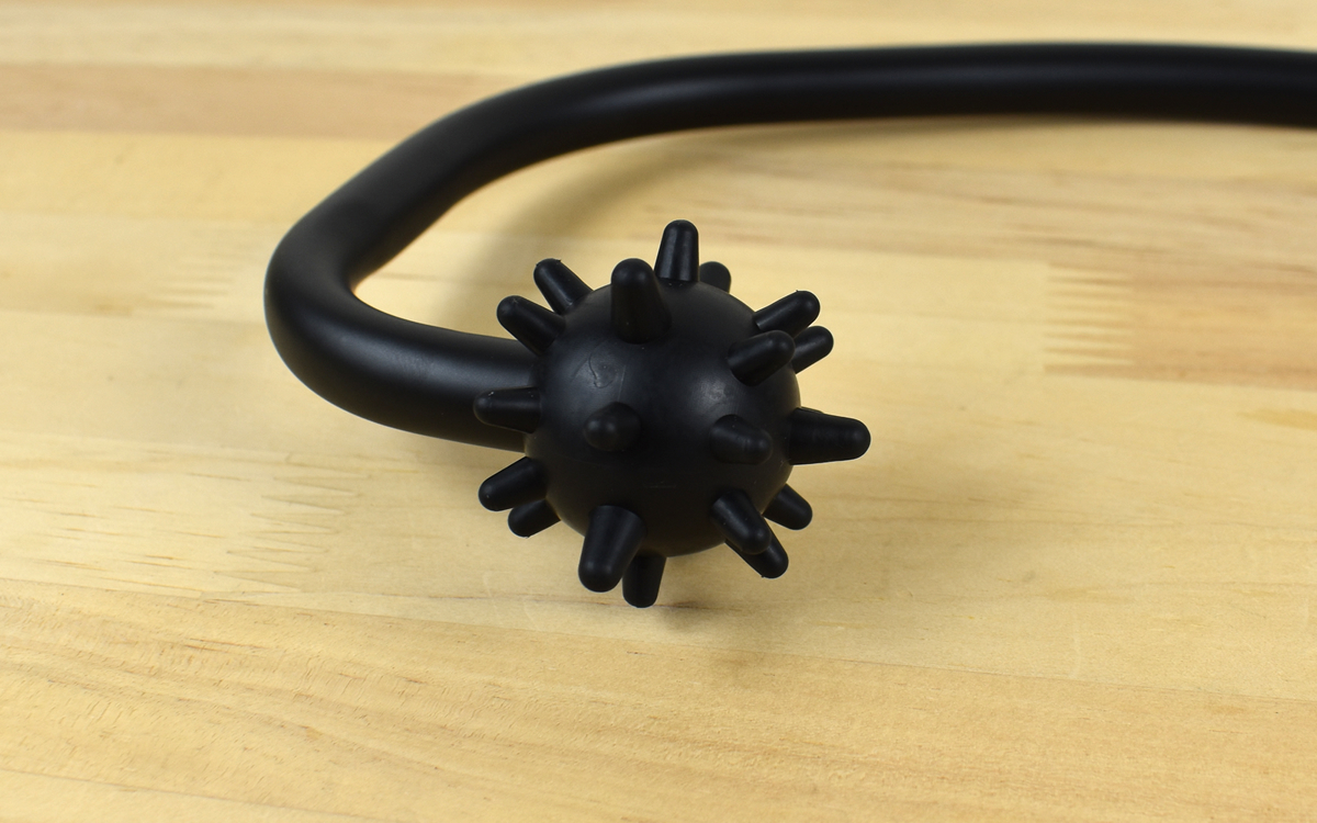 先端についた指圧玉は突起がついていて、まさに鬼の金棒を彷彿とさせるデザイン。この部分を身体の様々な箇所にあてることで、コリをほぐしたりツボを刺激したりできます。またグリップ部分はカーブになっていて握りやすく、手がすべりにくいのもポイント。