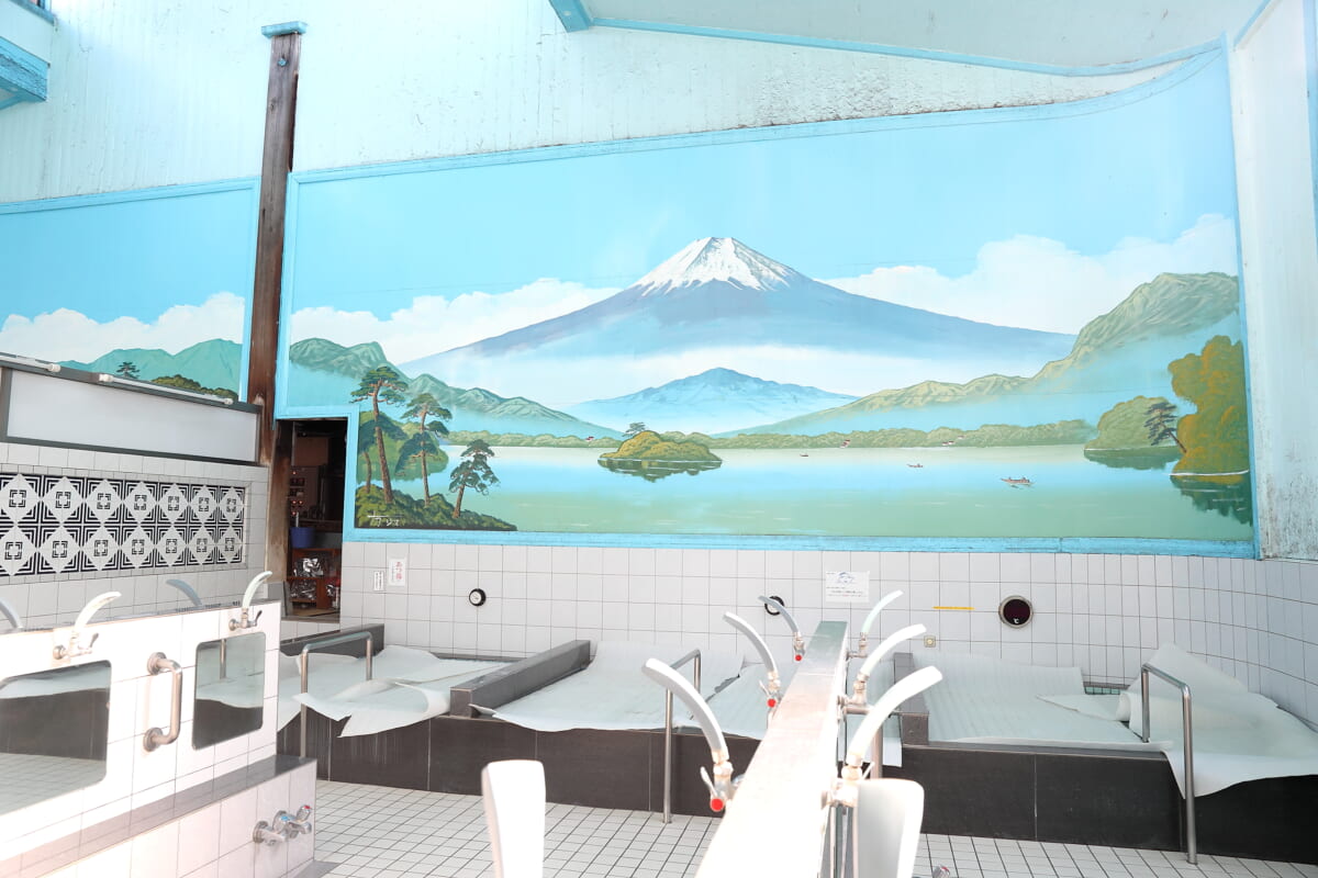 玉袋 サバイブ感がすごいね。男湯には定番の富士山が掲げられていますけど、今は富士山の絵(壁画)を描く人も少なくなっているんでしょう?
