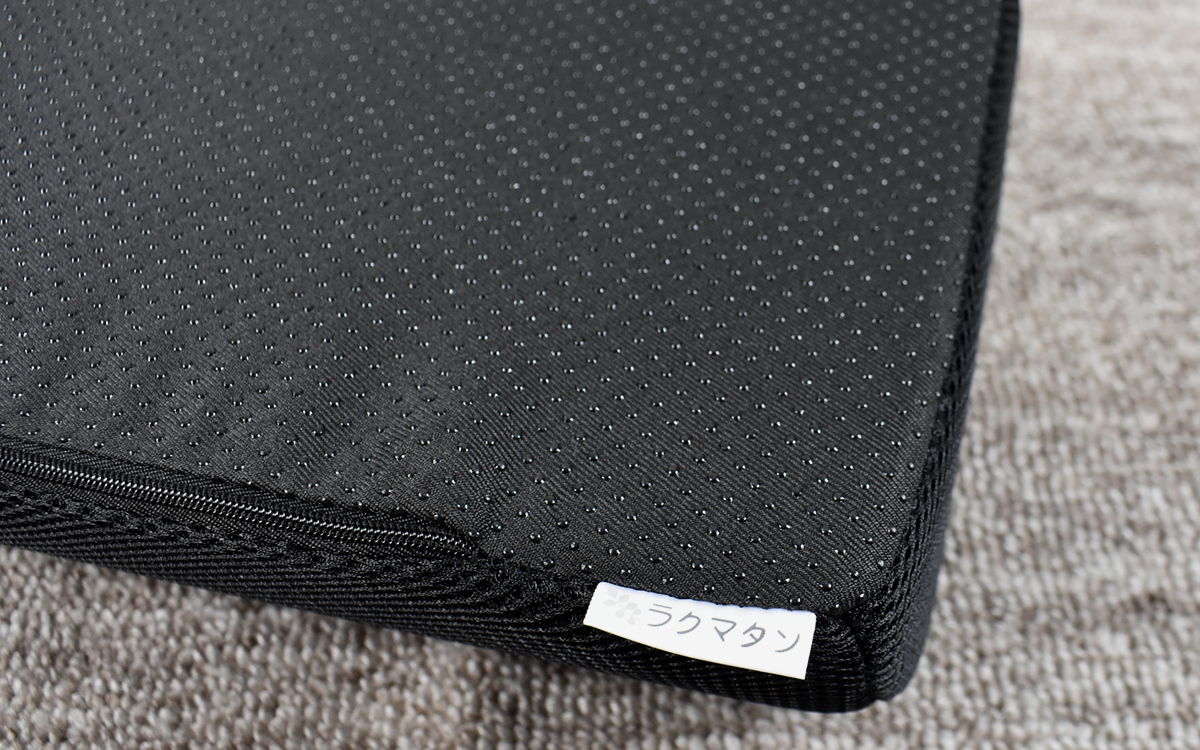 足や太ももを上げることにより、腰の負担や圧迫感の軽減が期待できる同商品。大きさは約40(幅)×20(奥行)×10cm(高さ)で、表面は通気性のいいメッシュ素材でできていました。