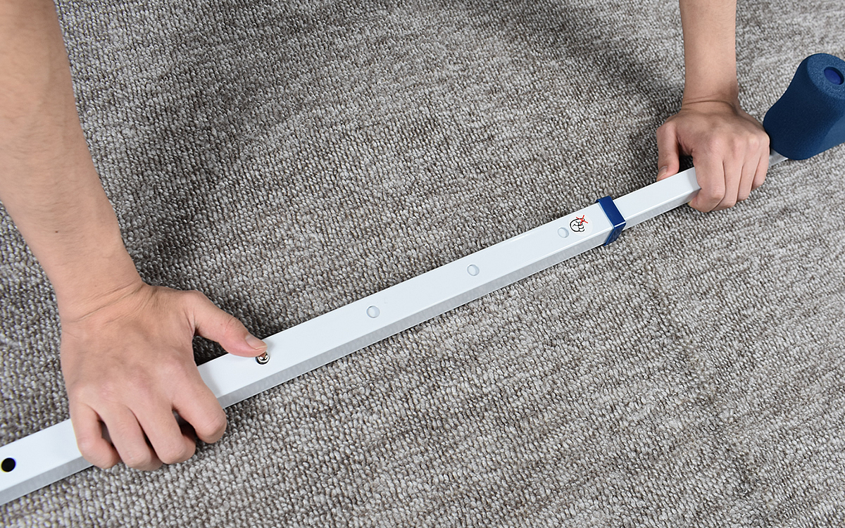 体が固い私にとってありがたいのは、開脚バーとハンドルバーの長さが調節可能な点。それぞれについているバー可動ボタンを押し、身長と柔軟度に合わせた長さに設定していきます。これなら誰でも無理をすることなく、自分に合った開脚ストレッチをおこなえるのではないでしょうか。