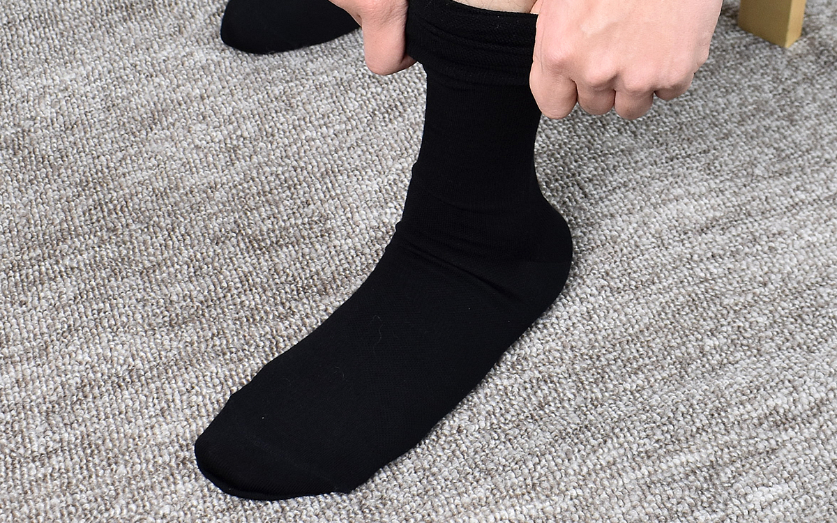 実際に足を通してみたところ、きゅっと締めつけられるような感覚にびっくり。足底からふくらはぎにかけて、確かに従来のソックスにはない肌にピタっと沿う力を感じることができます。とはいえキツいと思うほどの圧迫感はなく、履き心地は抜群。におい対策に役立つ「ブリーズファイバー」と呼ばれる繊維そのものも肌触りがよく、違和感を感じないまま過ごすことができました。