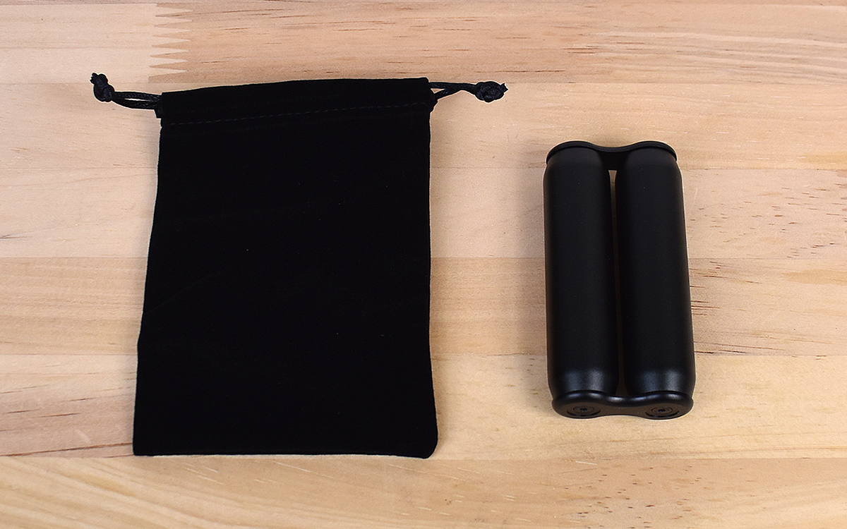 大きさは約8(縦)×4.5(横)×2.2㎝(奥行き)とコンパクト。鞄だけでなくポケットに入れるのにもちょうどいいサイズ感です。商品にはベロア調の収納袋がついており、傷や汚れも気にすることなく持ち運べますよ。
