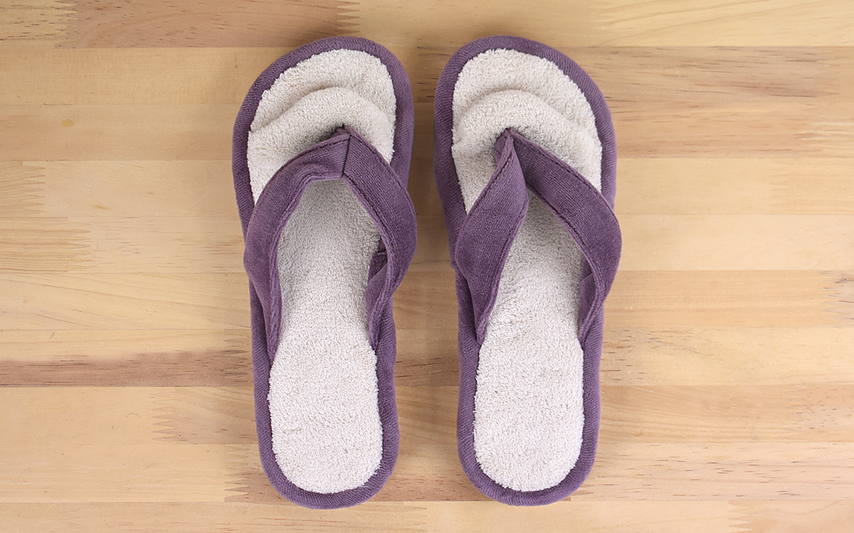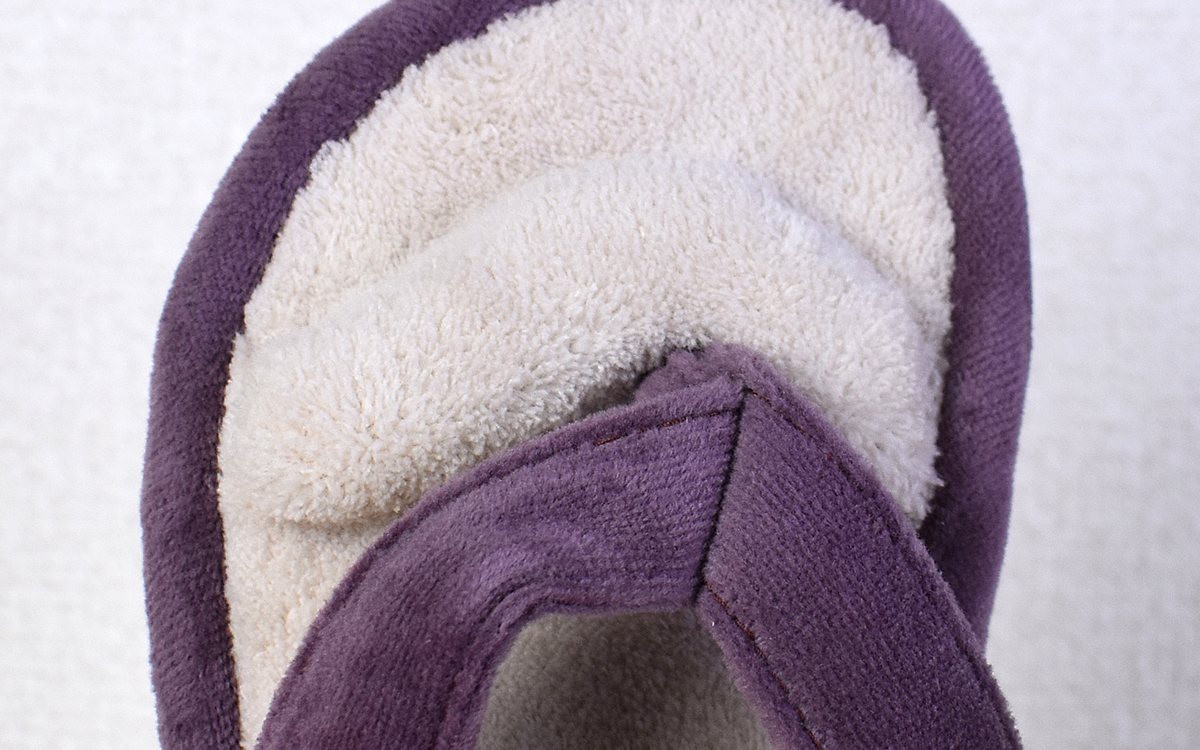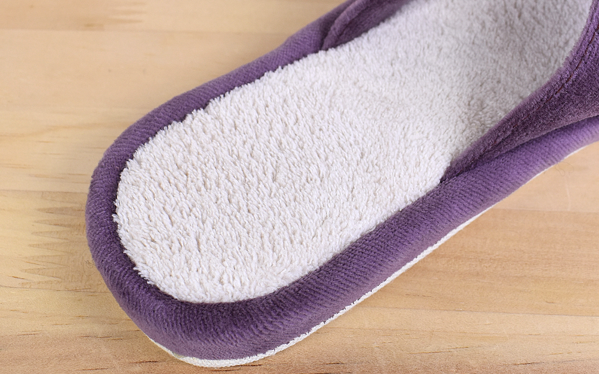 ネイビーと今回セレクトしたパープルの2色が販売されている同商品は、23.0~25.0cmのワンサイズ。手にしてみると見た目以上にふわっと軽く、鼻緒や中敷に使用されているポリエステルが肌ざわりの良さを感じさせてくれます。