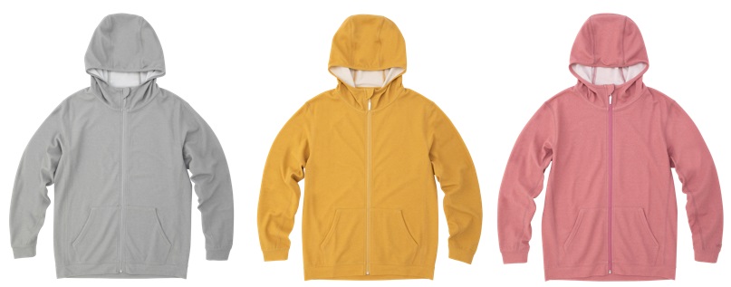 アパレルはサラッと軽い素材感で、暑い時期でも肌触り良く着用できます。キャップ、ハットは、本体とメッシュ部分に防虫加工を施した素材を使用しており、メッシュ部分は、虫が気にならない場所では取り外すことができます。