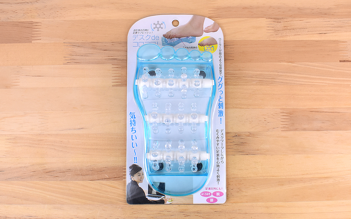 近年の健康志向により、デスクワーク時に使えるマッサージグッズが増加しています。かくいう私も以前に比べて外出時間が減ってしまい、運動不足が原因で足がむくみやすくなりがち。そんな状況を少しでも改善すべく、商品名に惹かれて「デスクdeコロコロ」(968円/税込)を購入してみました。どのように使用するアイテムなのか、さっそくチェックしていきましょう。