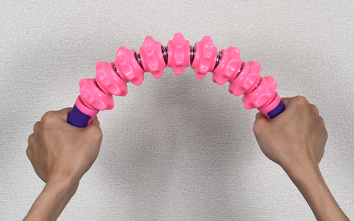 体をコロコロと転がして筋肉をほぐせるマッサージローラー。しかし、一般的なローラーだと形が真っ直ぐな分、太ももなどは一度に狭い範囲しか当たらなくて物足りなく感じます。そんな時に見つけたのが、MICHAELPISTEの「マッサージ ローラー」(1790円/税込)。力を入れると押し曲げられる仕様に惹かれ、すぐに購入を決意しました。