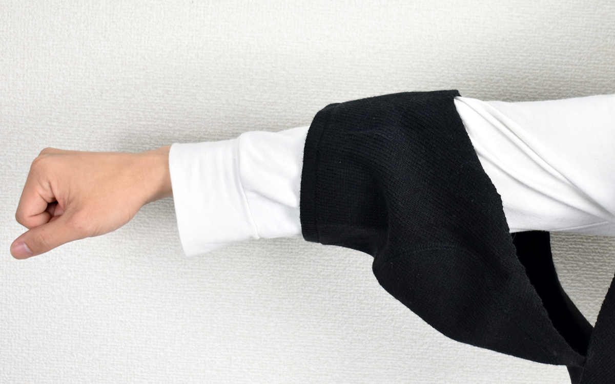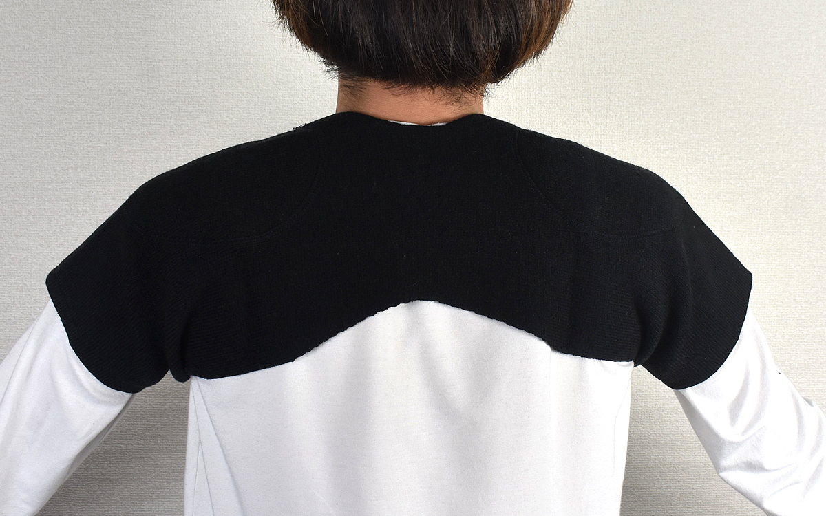 両肩の部分にはパッドが入っており、さらに温かさをプラス。肩回りをしっかり温めてくれるため、肩こりの症状緩和に繋がります。