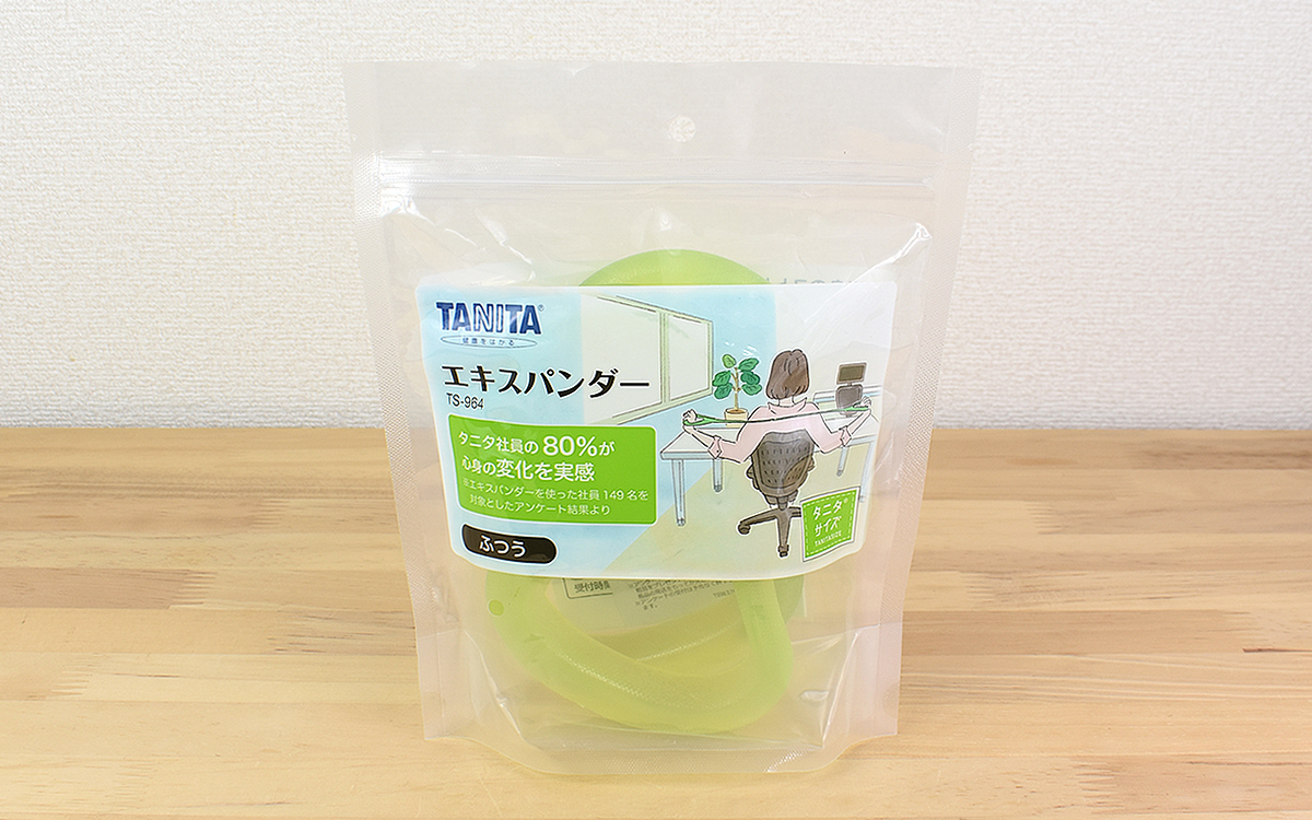 健康的な体を維持するために、日々の筋トレやストレッチは必要不可欠。とはいえ仕事が忙しいと、なかなか運動する時間が取れませんよね。そこで今回注目したアイテムが、タニタの「ソフトエキスパンダー ふつう TS-964(グリーン)」(906円/税込)。説明書には「運動方法が分かるエクササイズメニュー」が記載されているため、初めてエキスパンダーを使う人でも問題なくトレーニングに取り組めますよ。