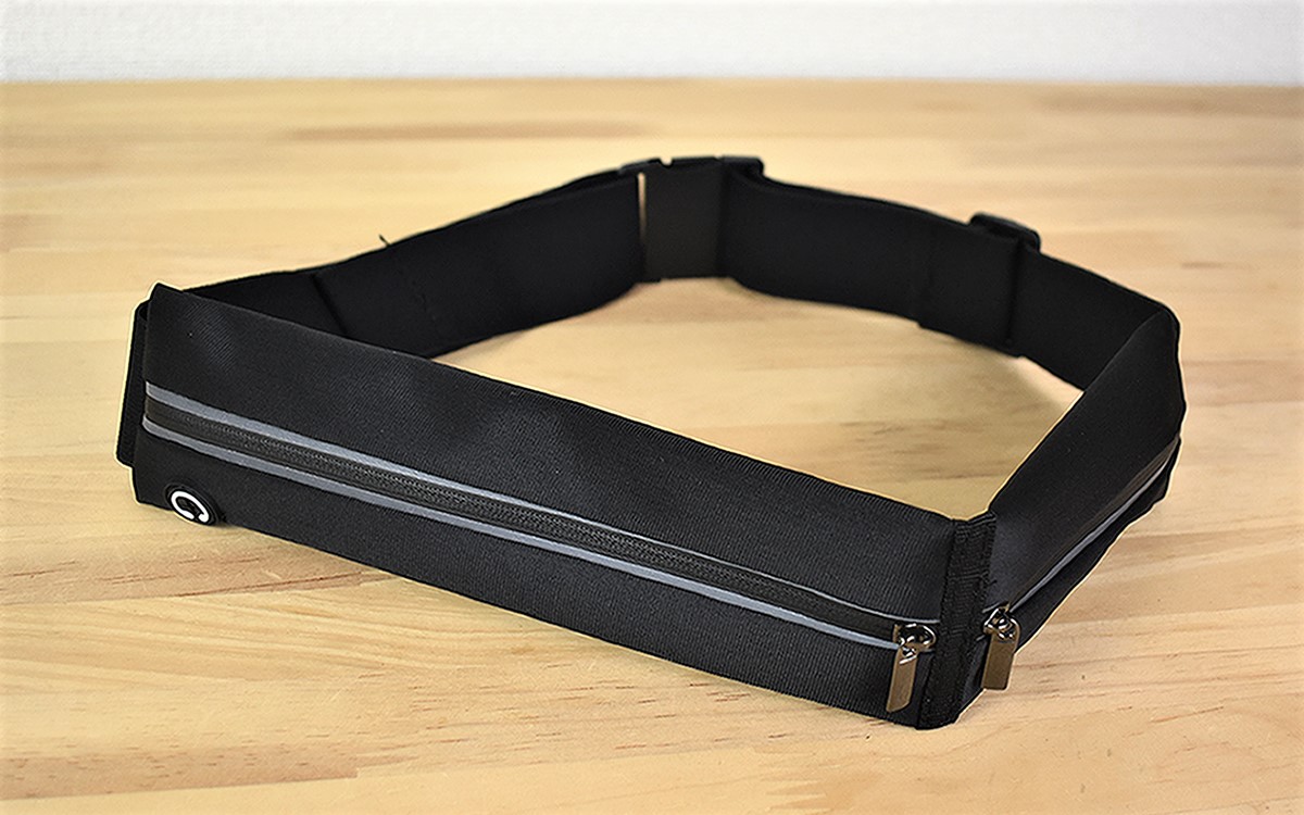 ランニング時は必要最小限の持ち物で出かけたいものです。しかしスマホや鍵・お金などを持ち歩くとなると、ポケットだけでは心もとないことも。そんな時にオススメなのが「ランニング ポーチ」(999円/税込)。今回はポケットが2つある「2つ口」タイプのブラックを購入しました。