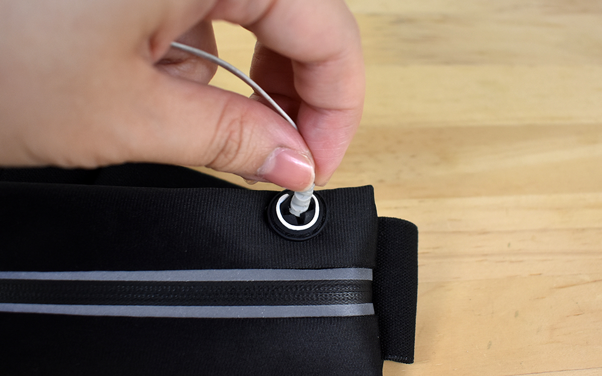 2つ口タイプは全長61~75cmに調整でき、自分のウエストに合ったサイズに変えることが可能。バンドには合成ゴムが使われており伸縮性もバツグンでした。本体は約65gと軽く、余計な重さも感じません。
