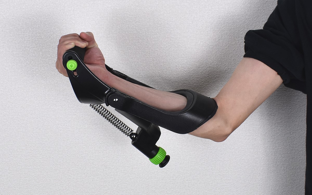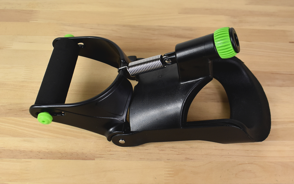 さっそく同商品を使って“手首を下に曲げる動作”を10回ほどやってみると、思ったより前腕筋に負荷がかかっていることを実感。スプリングの強度は高かったものの、負荷を調整しながら無理なく鍛えることができました。