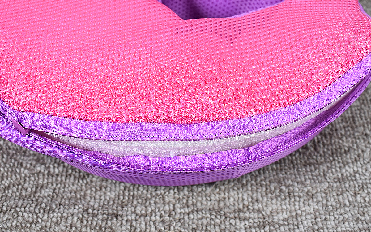クッション風で丸みを帯びた形状の同商品。真ん中は空洞になっており、座った状態で両足を入れてコロコロと左右に転がすと下腹部を鍛えられます。器具のサイズは約40(幅)×34(高さ)×10cm(奥行)とコンパクトで、場所を気にせずトレーニング可能。収納時も袋が付属しているので、壁掛け保管でスペースを取らずに置いておけますよ。