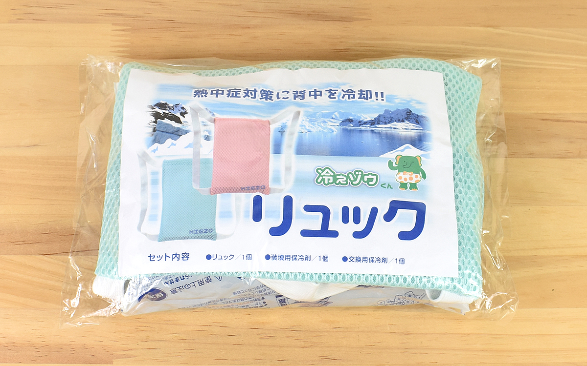ベストやマフラー、パッド型などのラインナップがある中で、今回購入したのは「冷えゾウくん リュック」(1400円/税込)。名前の通り、約14×21cmの保冷剤がすっぽりと入るリュック型の商品です。