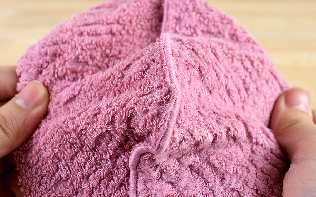 それでは実際にホットマスクとして使ってみましょう。まずは水やぬるま湯でマスクを濡らしたら、500Wの電子レンジで約1分加熱します。適温(目安は40度程度)になるまで冷ましてから顔に約1~3分乗せ、マスクを外して化粧水や保湿クリームを塗りこめばOK。マスクの使い心地としては適度な重さで包み込まれるような安心感があり、優しい肌ざわりからも今治タオルの品質の高さが感じられました。