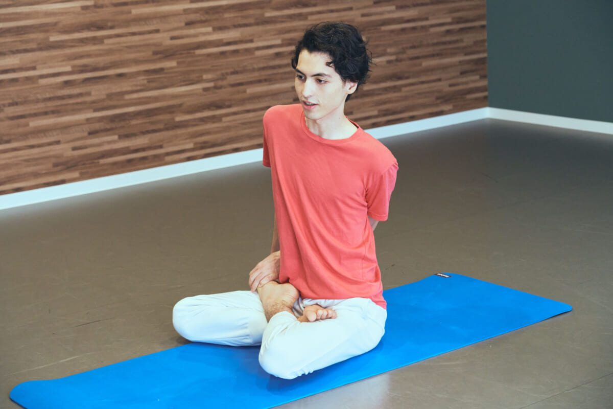 一條 僕は、オフィスでのデスクワークが多くて、一日中座りっぱなしの時も多いんです。なので、ずっと作業していると、腰が痛くなったり、集中力もなくなってきて効率ダウンすることもしばしば。何かオフィスでもできそうな“プチヨガ”的なものってありますか?