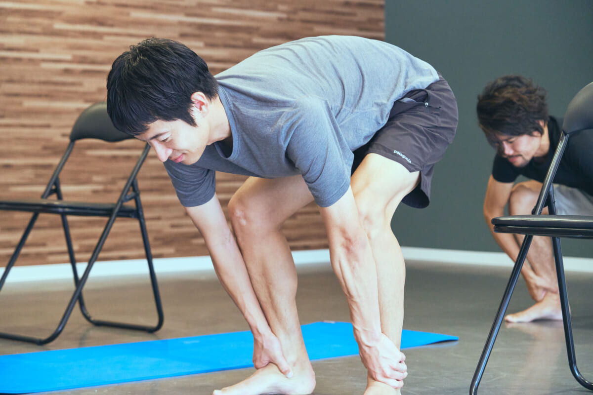 谷戸先生 男性は、ポーズを取るときに力でできてしまうことも多くて、そうすると、呼吸が止まってしまいがちなんですよね。最終的には、息が上がって疲労しやすいなんてことも。意識的に呼吸をすることを心がけてほしいです。