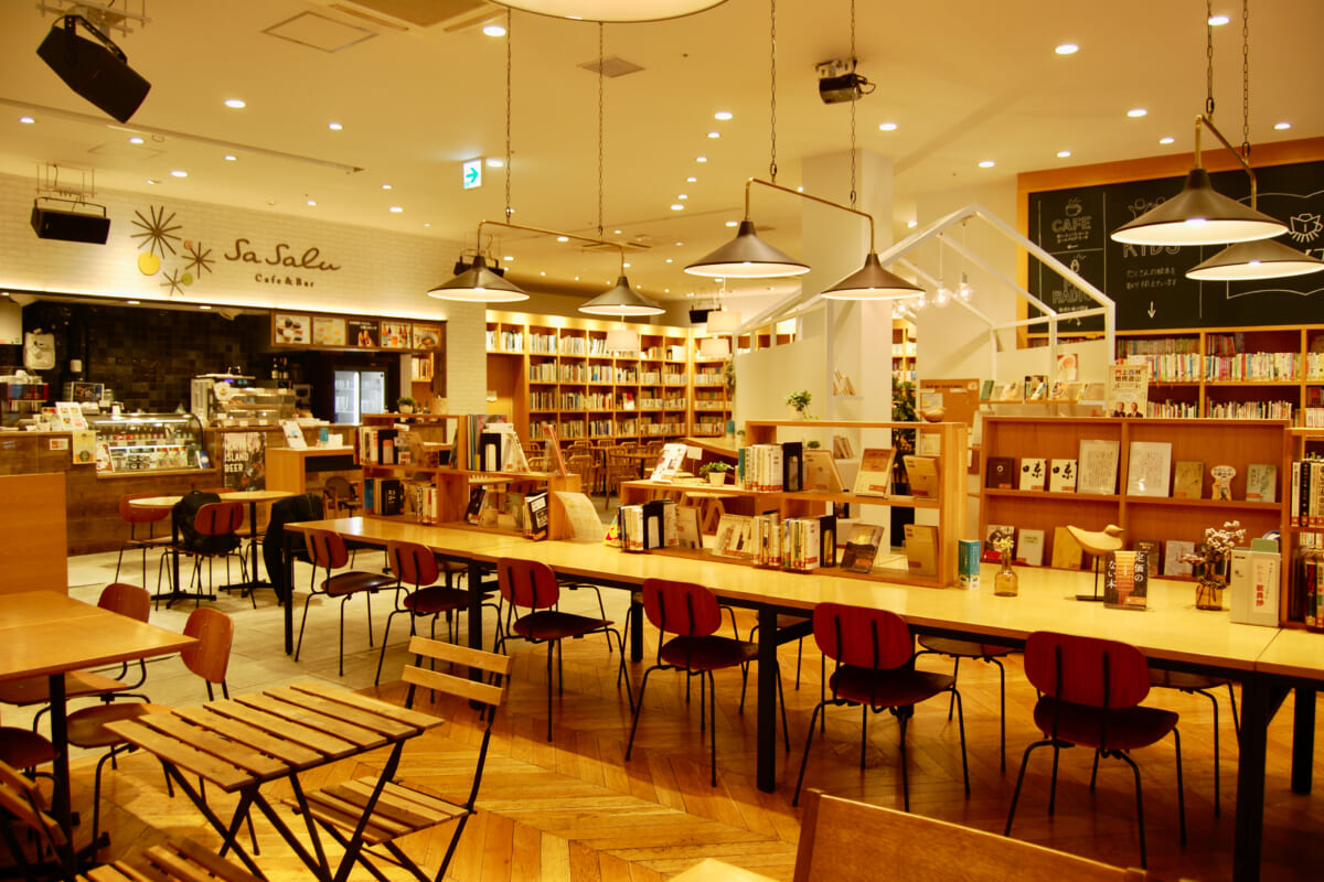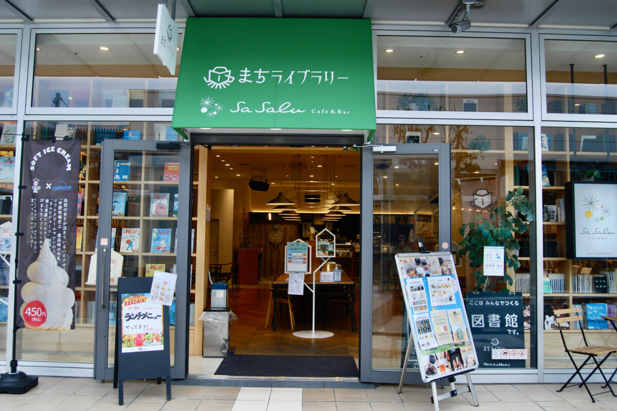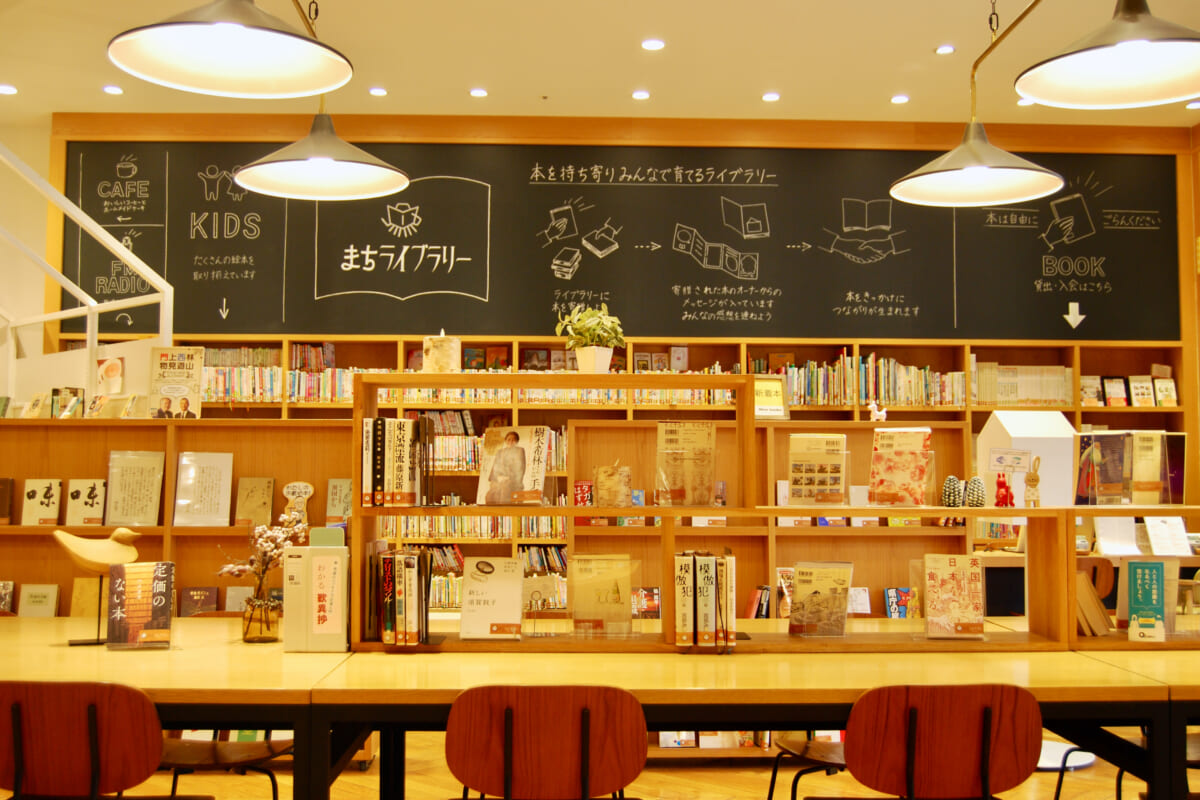 現在約1000か所あるまちライブラリーのなかでも、ここ大阪・森ノ宮の「まちライブラリー@もりのみやキューズモール」は、全国ナンバーワンの貸し出し数と利用者数を誇ります。食事ができるカフェも併設されており、訪れる人は思い思いに読書を楽しんだり、仕事をしたり、食事を楽しむのだそう。