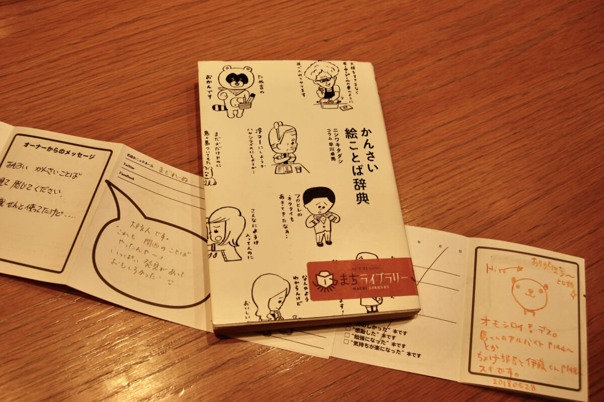 実は、まちライブラリーにある本は、すべて寄贈書。寄贈する際には、オーナーからのメッセージを書きこむことになっています。そして、本を借りた(読んだ)人は、自由にメッセージを加えていけるのです。