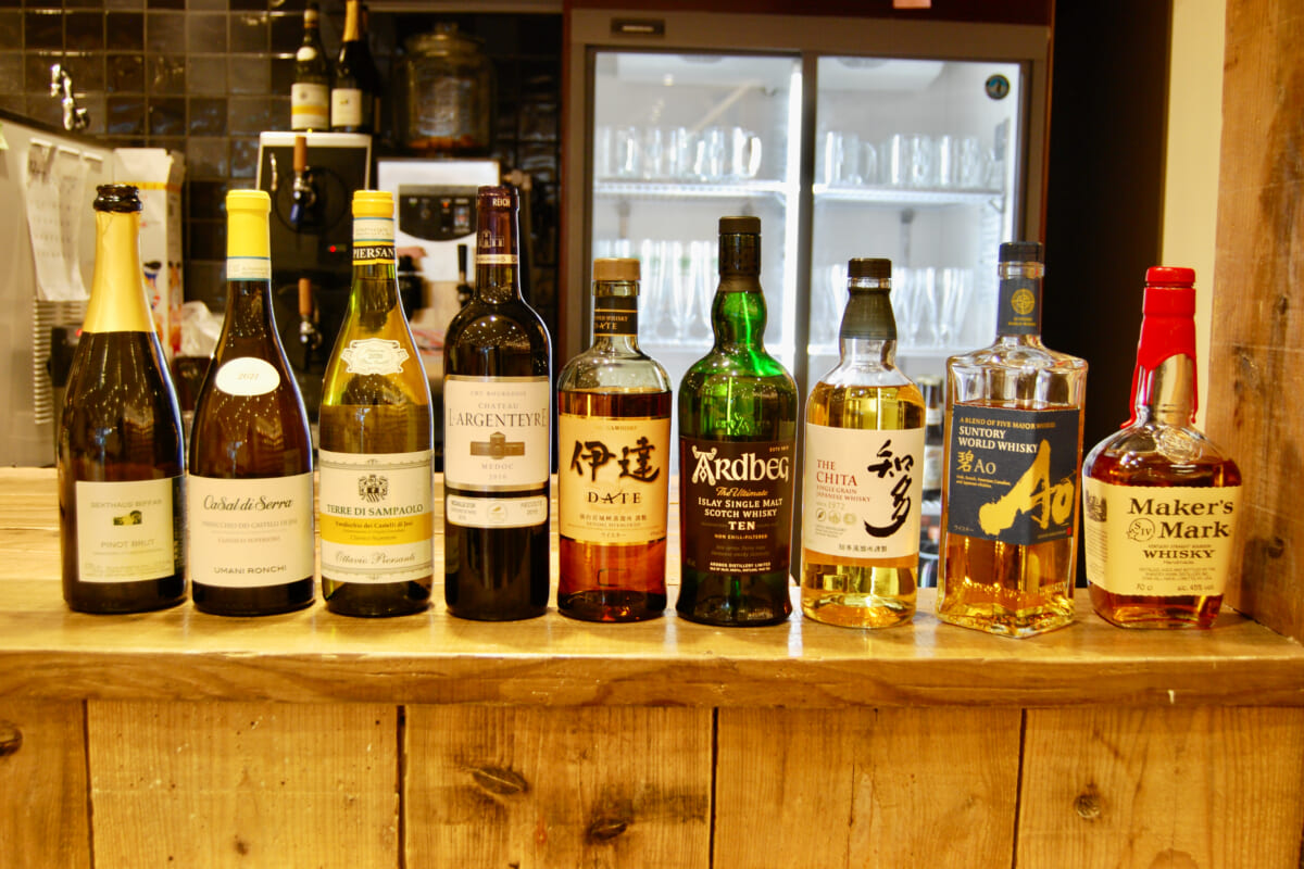 クラフトビールにワイン、スパークリング、ウイスキー、そしてつまみにはチーズやナッツ、生ハムなど。