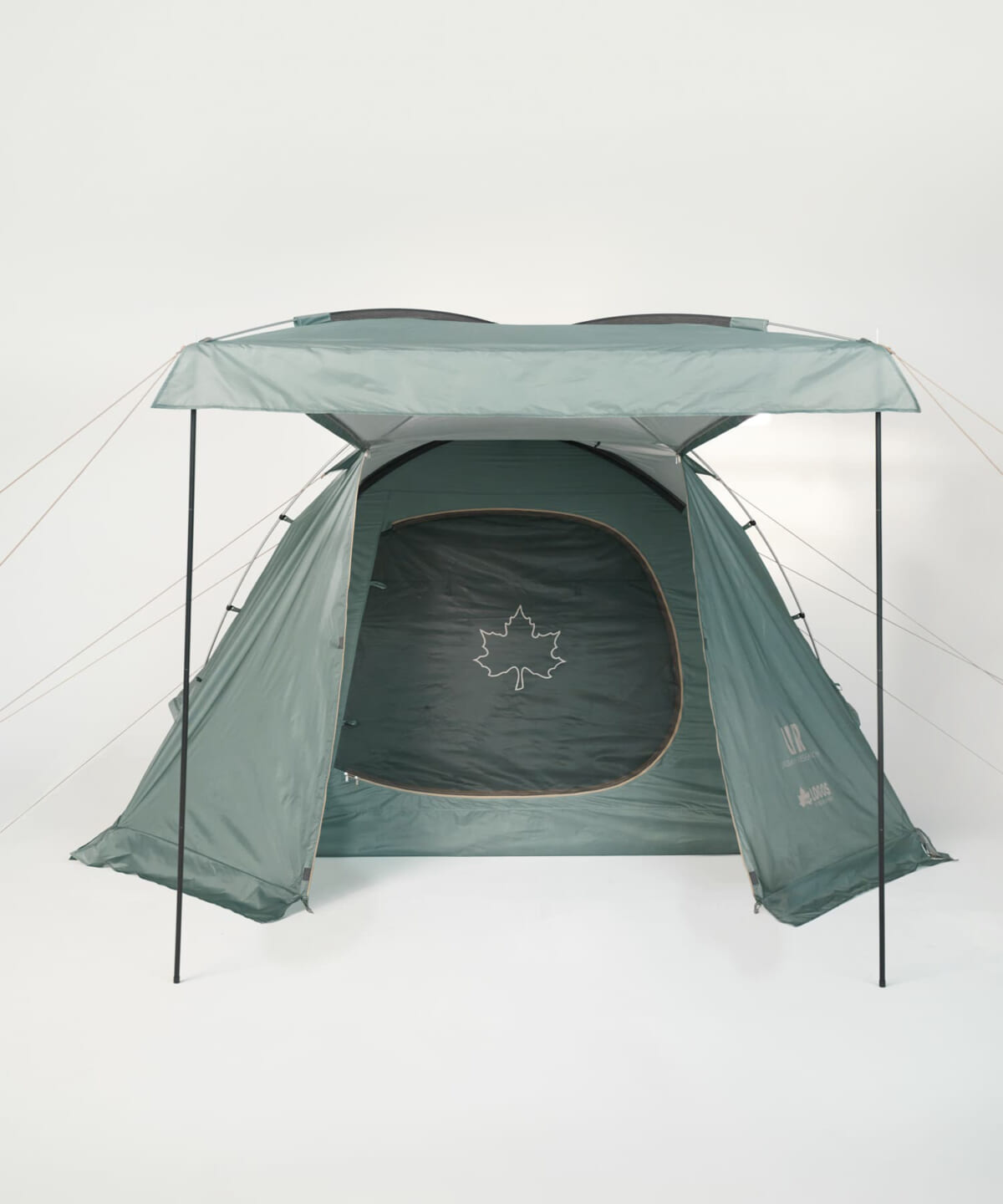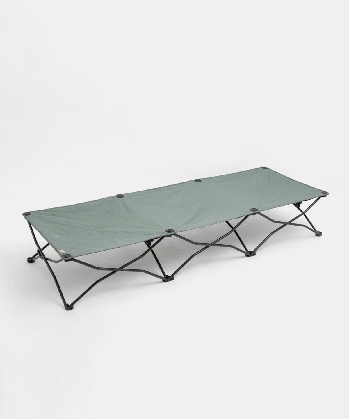今回発売されたのは、「別注LOGOSベーシックドーム」「別注LOGOSヘキサタープセットM」「別注LOGOSコンフォートベッド」「別注LOGOSキングアグラチェア」「別注LOGOSチェアfor2」。アイテムのカラーリングには、青々しさを控えたスモーキーな緑色「グレイッシュグリーン」を採用しています。