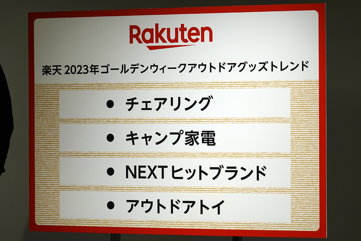 楽天グループは、「楽天 2023年 ゴールデンウィーク お出かけ&アウトドアグッズトレンド」を発表。合わせて、楽天市場で特集ページ「2023年 トレンド先読みアウトドアグッズ」を開設しました。