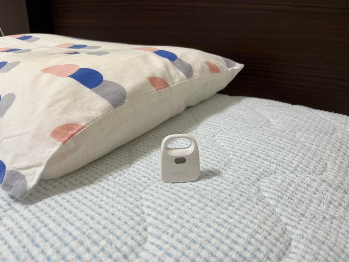 置く場所は、枕元がおすすめ。小さいので、ふとんの中に入ってしまわないように気をつけましょう。日中も枕元に置いたままでOKなので、充電したり移動させたりする手間もなく、本当に手軽でしたよ。
