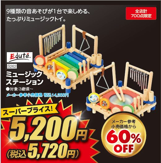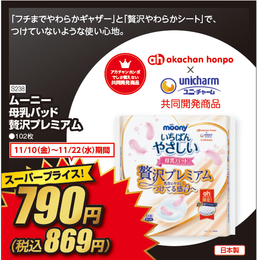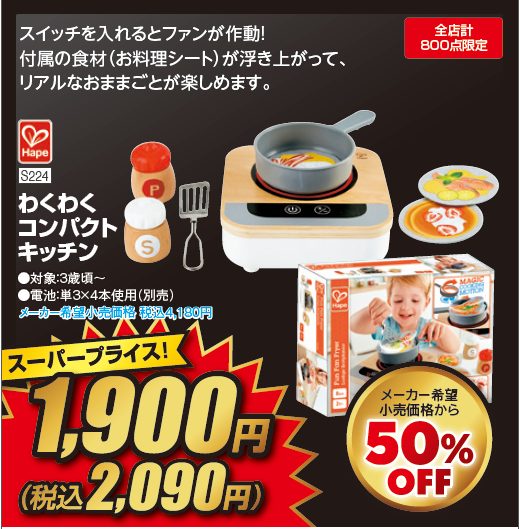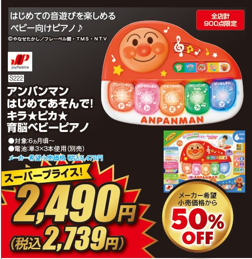 11月16日まで開催中の第3弾では、おもちゃや紙おむつ、プレオールなどがスーパープライスの対象となっています。