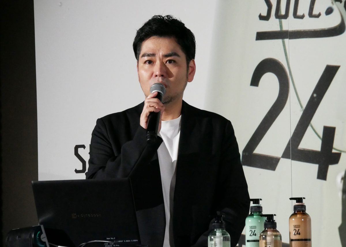 発表会では、男性美容研究家の藤村氏が若年層のうちにすべき頭皮スキンケアの重要性を語った。「頭皮を洗うことが意識され始めたのが約20年前。しかし、力強くゴシゴシこするように洗う、という間違った認識が生まれてしまいました」と、頭皮スキンケアどころか頭皮を刺激する認識が広がっていたことを指摘。