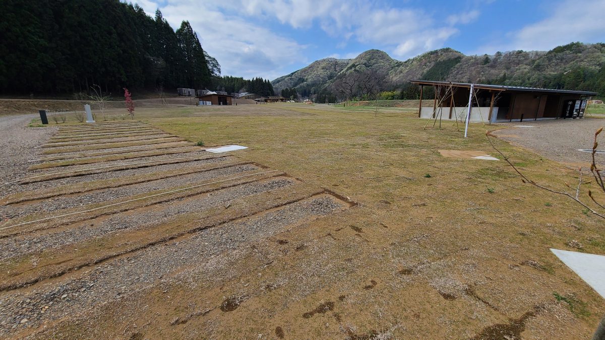 キャンプフィールドの入口から最も近い、サイトA。ストアや温泉施設からも近いのは便利な点といえるでしょう。