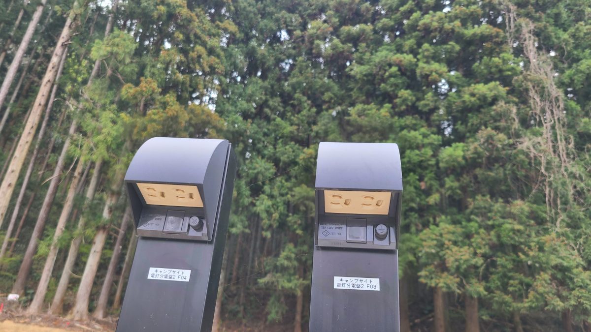 サイトE,Hには、区画ごとに電源コンセントが設置されており、2つのコンセントを利用できます。最大出力が1500wと大きめなので、安価なポータブル電源では使えないような消費電力の多いきい暖房器具などが使えるのはありがたいところ。