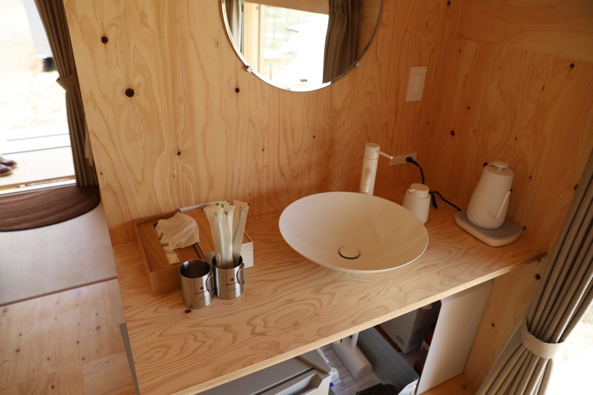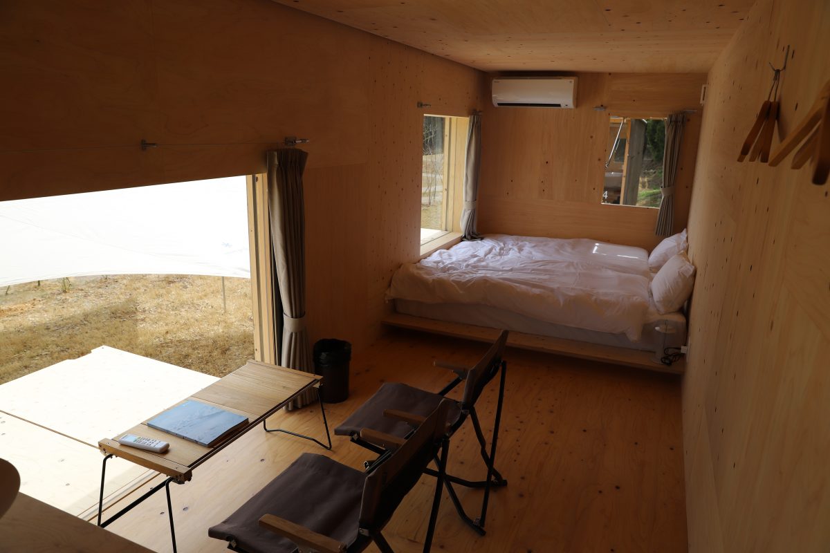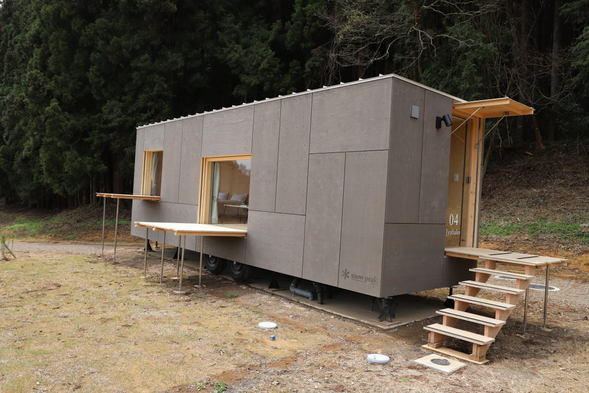 住箱とは、スノーピークが販売するトレーラーハウスのこと。キャンプ場というよりはホテルの一室のような感覚で泊まることができます。