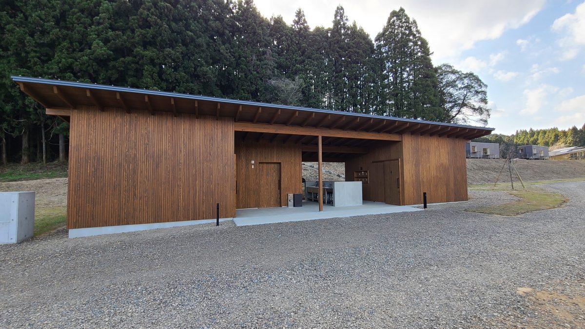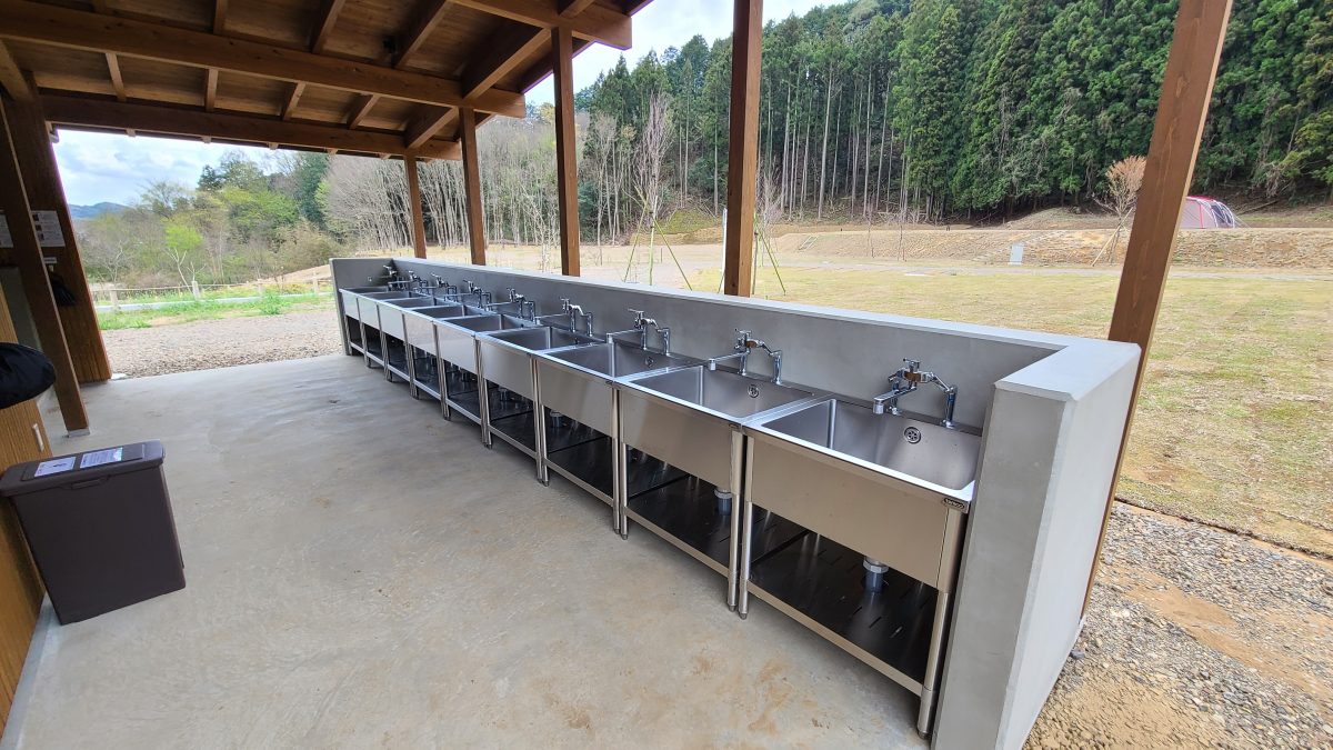 「洗い場」「トイレ」「ごみ捨て場」「灰捨て場」など、よく使う設備は「サニタリー棟」という建物に集約されています。サニタリー棟はキャンプフィールド内に複数設置されているため、どのサイトからもすぐに行けて便利です。