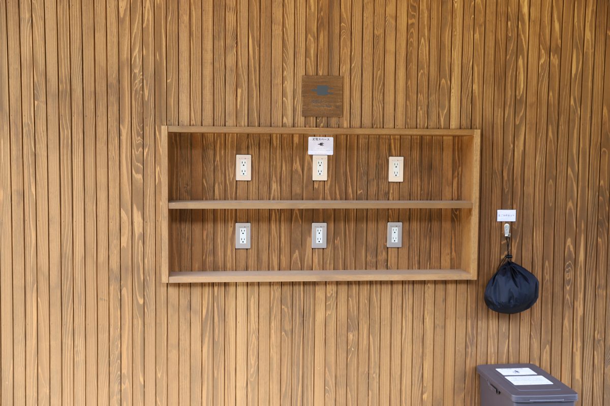 コンセント付きの棚で、スマホやランタンなどの充電ができます。