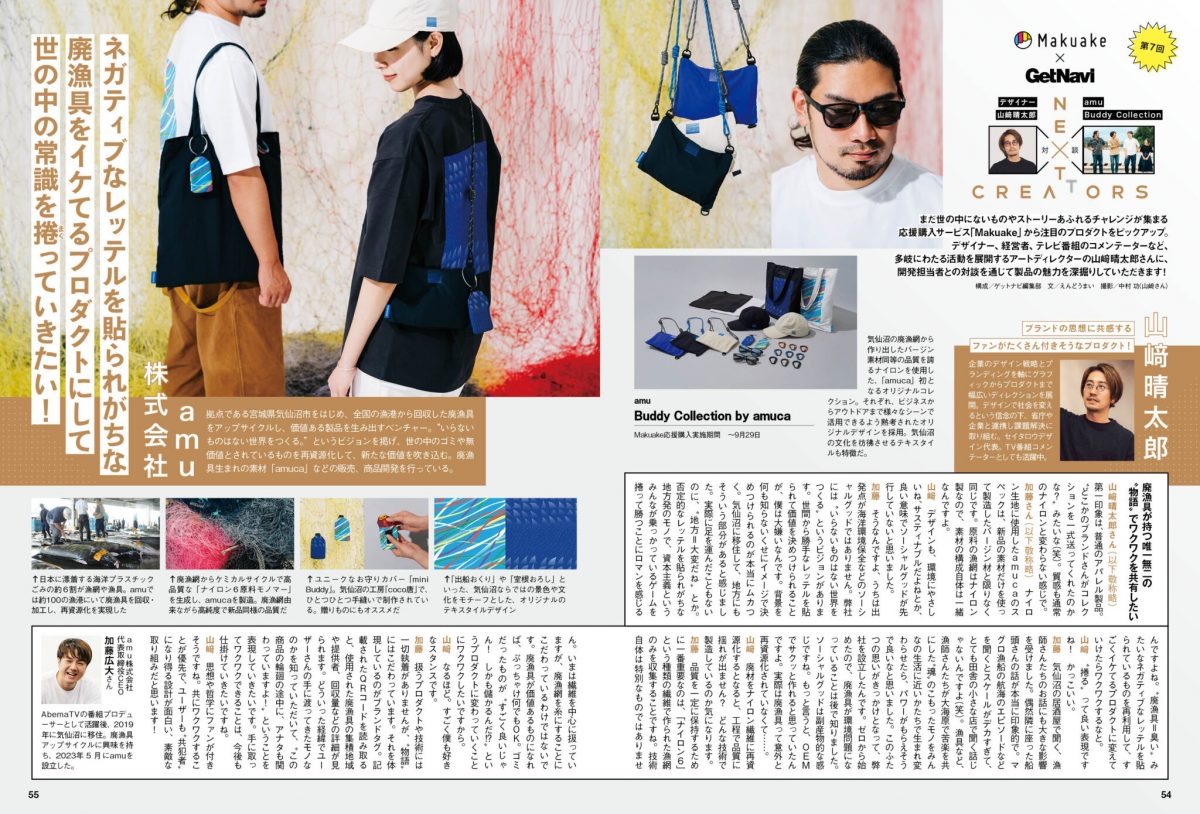 →まだ世の中にないものやストーリーあふれるチャレンジがあつまる応援購入サービス「Makuake」から注目のプロダクトをピックアップ。今回は全国の漁港から回収した廃漁具をアップサイクルし、価値のある製品を生み出すベンチャー amuの加藤さんと対談していただきました。