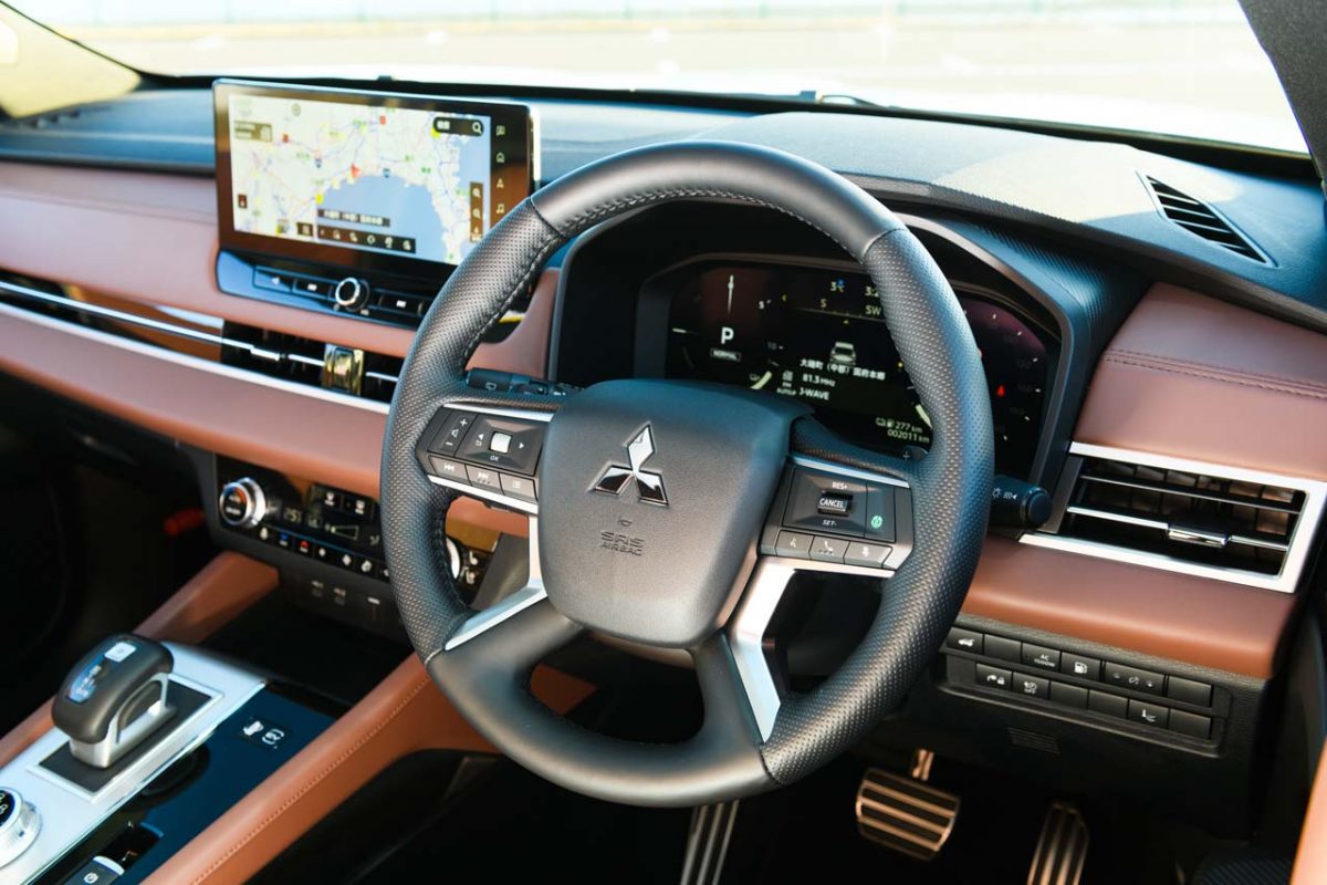 市街地に入ってからは、この大柄で2t近い重量級のボディとは思えないフットワークの良さが光ります。車線変更はもちろんのこと、交差点での操舵フィールも良好で、ステアリングを操作する度に運転する楽しさを実感させてくれるのです。さらに狭い路地に入っても、ボディの見切りの良さがサイズ感を感じさせないスムーズな走行を可能にしてくれました。このあたりは、「パジェロ」などの大型SUVで培った、三菱ならではの経験が活かされているに違いありません。