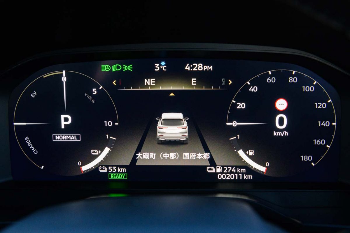 さて、実際に走ってみましょう。スイッチをONにしてアクセルを踏むと、車体はほとんど音もなく前へと進み出しました。スタート地点から西湘バイパスまでの一般道でエンジンがかかることは一切なく、西湘バイパスの本線へ流入する際、アクセルを少し強めに踏んだところで初めてエンジンが動き出したのです。この加速は極めて力強く、アッという間に本線の流れに乗ることができました。