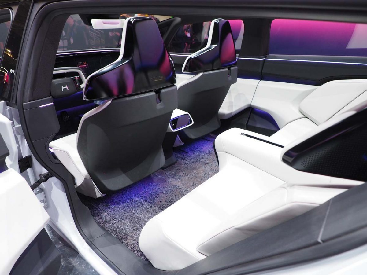 最後にAFFELA 1の多彩なエンタテイメント機能について。ダッシュボードの左右いっぱいに広がるディスプレイ上には、ストリーミングサービスによる多彩なコンテンツが展開され、その中にはネットでつながるゲームも含まれます。しかも、ロングドライブに同乗者を飽きさせないよう、4席それぞれが別々のコンテンツを楽しめるシステムも組み込みました。それに合わせてソニーの立体音響技術(360 Spatial Sound Technologies)による没入感あふれるサウンド環境も用意されているのです。
