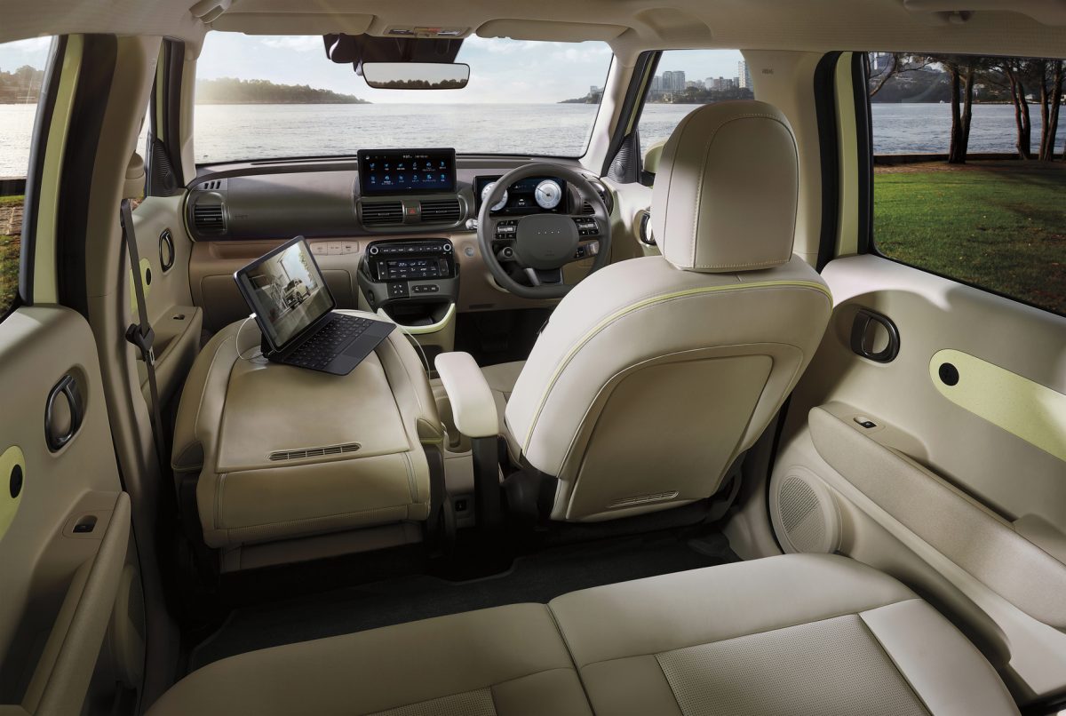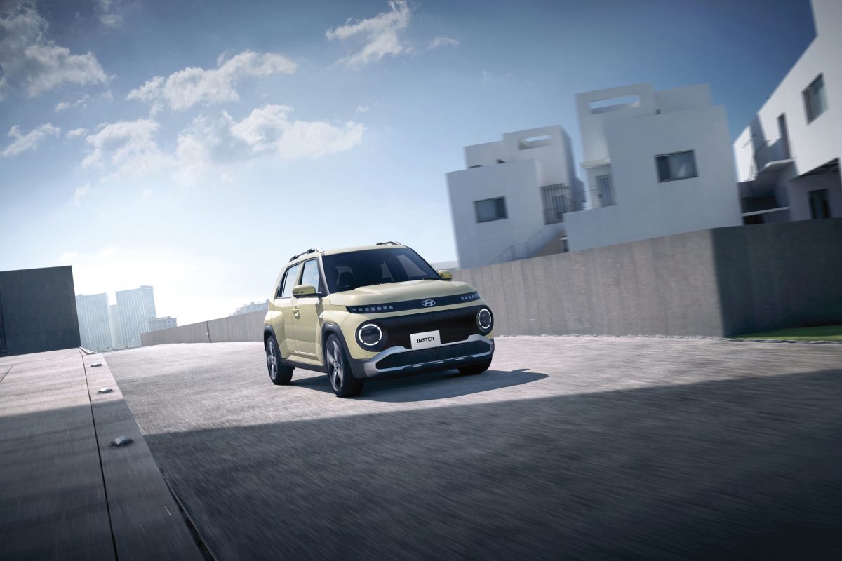 インスターが持つ最大のポイントは、全長3830mm×全幅1610mmというコンパクトなサイズながら、全高は1615mmと少し高めのSUVっぽいフォルムを備えていることにあります。実はインスターは、韓国内で軽自動車規格「軽車=キョンチャ」として販売されている「キャスパー」をベースとしています。それを、全長で230mm、ホイールベースで180mm長くし、後席と荷室を広げて実用性を高めたEVとして登場しているのです。