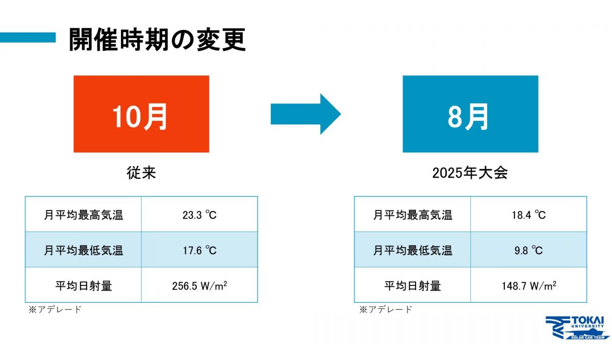 開催月が変わり、ソーラーカーの命綱「日照時間」がぐっと短く