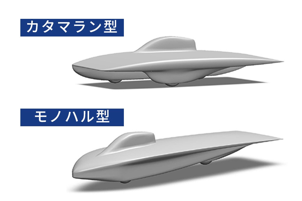 ソーラーカーの形状は、基本的に“カタマラン型”と“モノハル型”の2つのいずれかを選ぶことになります。今回、東海大学は、どちらの基本形状を選ぶかを改めて検討しなおしたそうです。