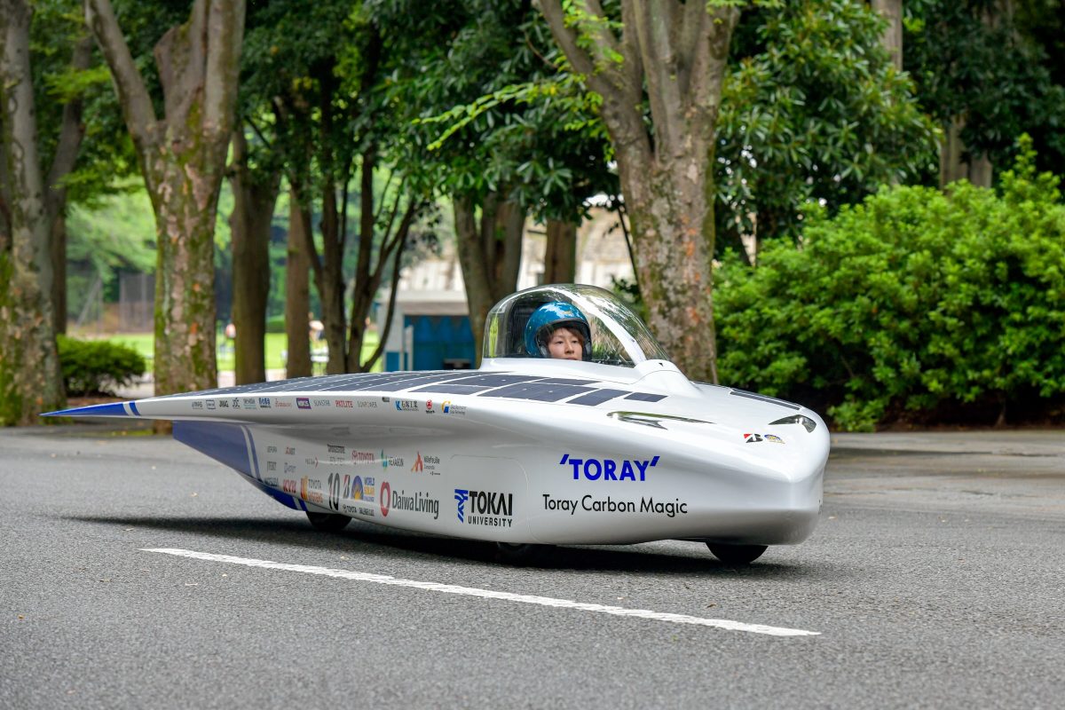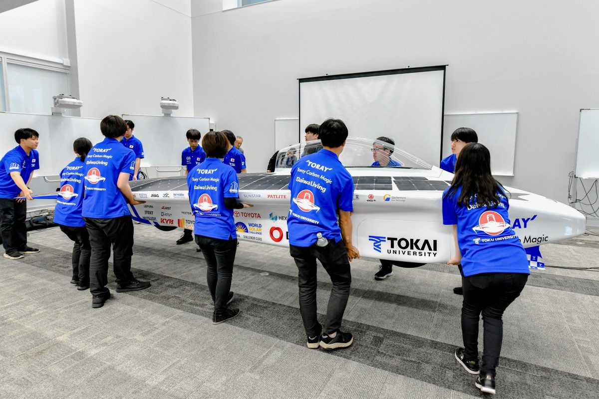 発表会当日は、今回の参戦体制についての説明が行われたほか、レースで実際に走行する最新のソーラーカー「2025年型 Tokai Challenger」を初お披露目。さらに発表会終了後には、東海大学・湘南キャンパス内でデモ走行も行われました。