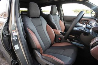 EVらしくヒーター内蔵となるシートは、日本市場向けに設定したという華のある色使いも魅力。前後席とも空間は十分な広さだ。