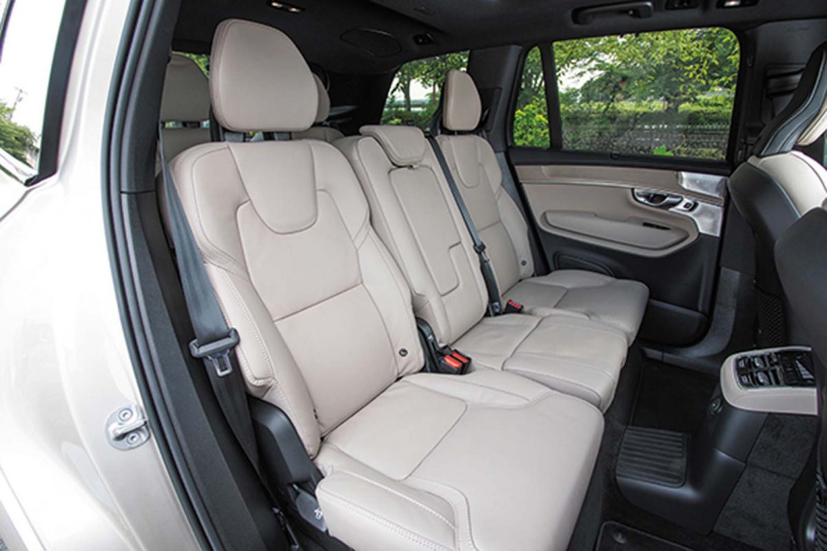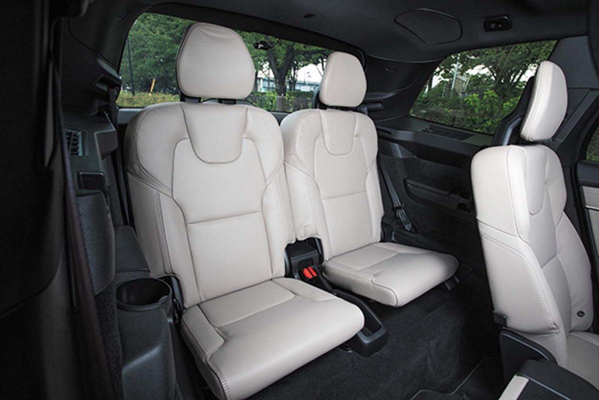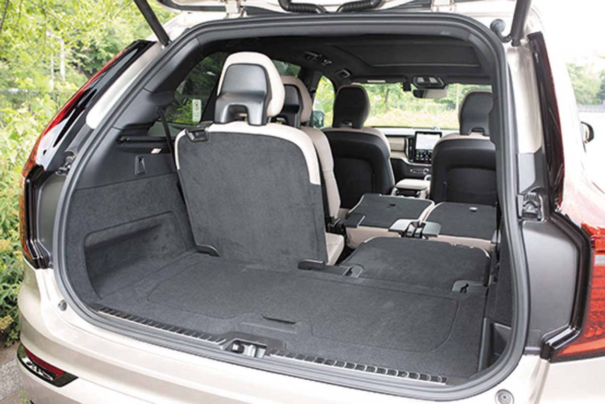 プラグインHVはナッパレザーが標準だが、シート表皮はグレードに応じリサイクル素材も選べる。室内空間は、2列目までなら余裕たっぷり。2人掛けの3列目でも実用的な広さ。