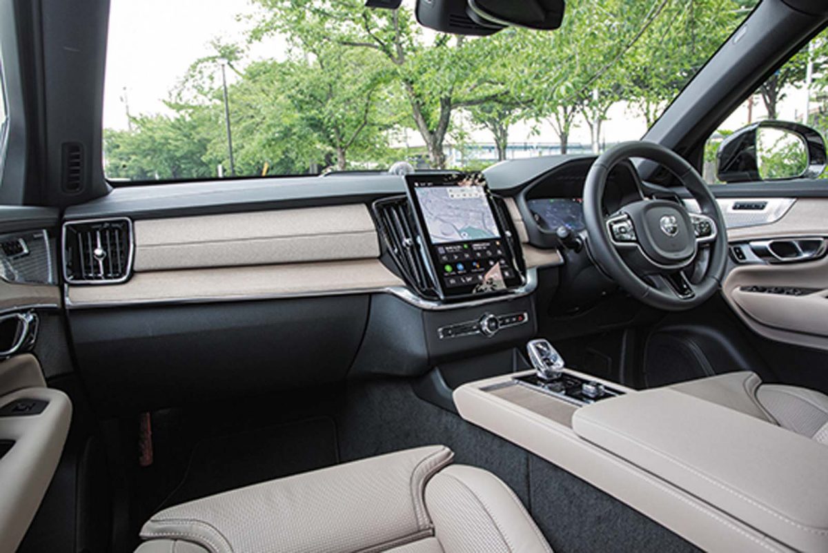 部分的変更で大きくイメージを変えたのはインテリアも同じ。インパネ中央のタッチディスプレイは、9インチから11.2インチへと拡大。Google搭載のインターフェイスもアップデートされ、見た目だけでなく操作性も向上している。また、環境意識の高いボルボらしくシート表皮に新たなリサイクル素材のファブリックが選べるようになったこともトピックのひとつに挙げられるだろう。