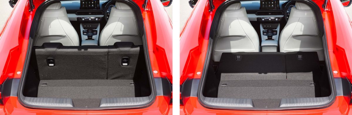 カーゴルームはプレリュードとしては初めてハッチバック式が採用されました。リアエンドを低く抑えているため、かさばるものを積載することは難しいものの、後席の背もたれをたためば、旅行に出掛けるときの大きな荷物でもしっかり載せられます。