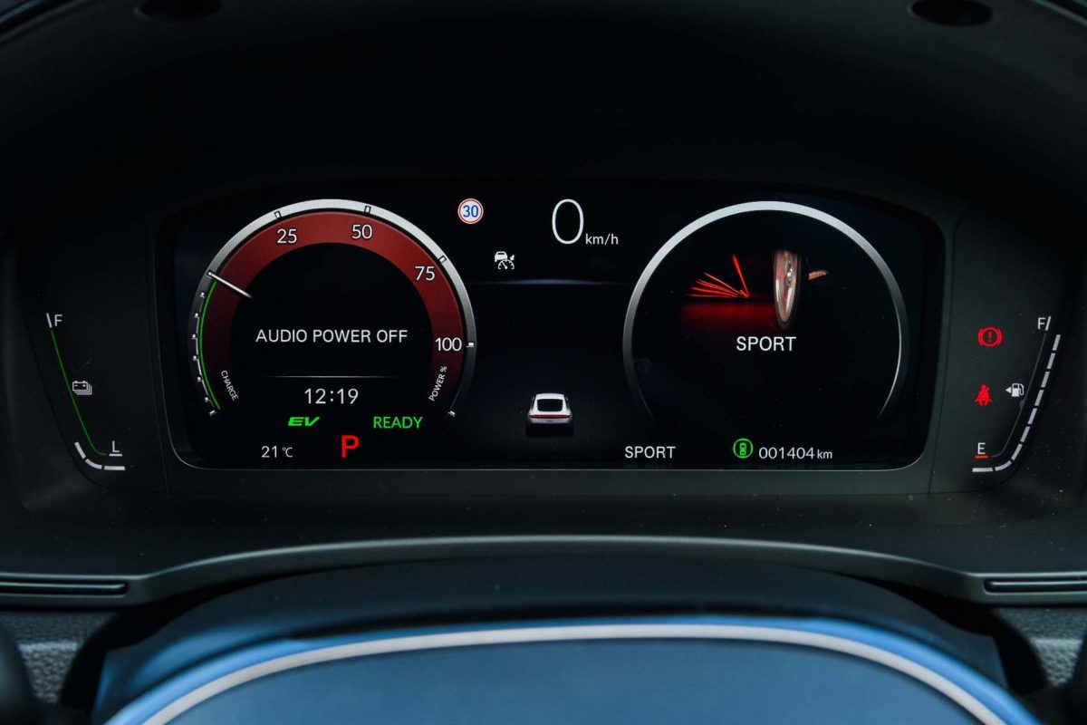 個人的にもっともワクワクとしたのがSPORTでした。このモードに切り替えるとメーター内のカラーが赤に切り替わり、同時にアクセルの踏み込みに応じて「アクティブサウンドコントロール」による電子サウンドがスピーカーから聞こえてきます。